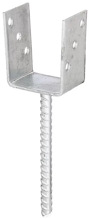 Ancre de poteau en U avec tige en acier cannelé – à bétonner – Ø 19 mm 91 x104